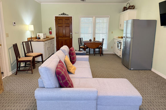 Scissortail Cottage features two fireplaces, a spacious walk-in shower and a whirlpool tub. Enjoy quiet evenings on the porch or in the spacious backyard.